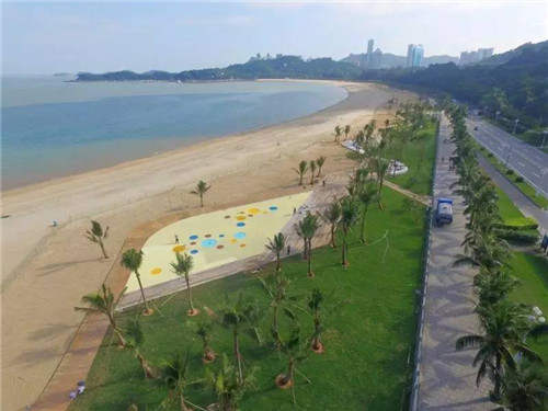 从今年8月份开始,香炉湾景观再造工程启动。工程主要对沙滩靠情侣路侧沿线设置宽约15米的景观绿化带,面积约3万平方米。