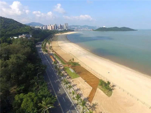 其中,一期建设范围从海霞新村巴士站附近至侨苑巴士站附近,建设长度约1000米,面积约为1.8万平方米景观,包含一条宽约3米的木栈道,在沙滩靠情侣路侧建一条3.6米宽的自行车道,一个可以供儿童娱乐玩耍的水景广场,同时还会分段布置整石坐凳方便市民休憩。